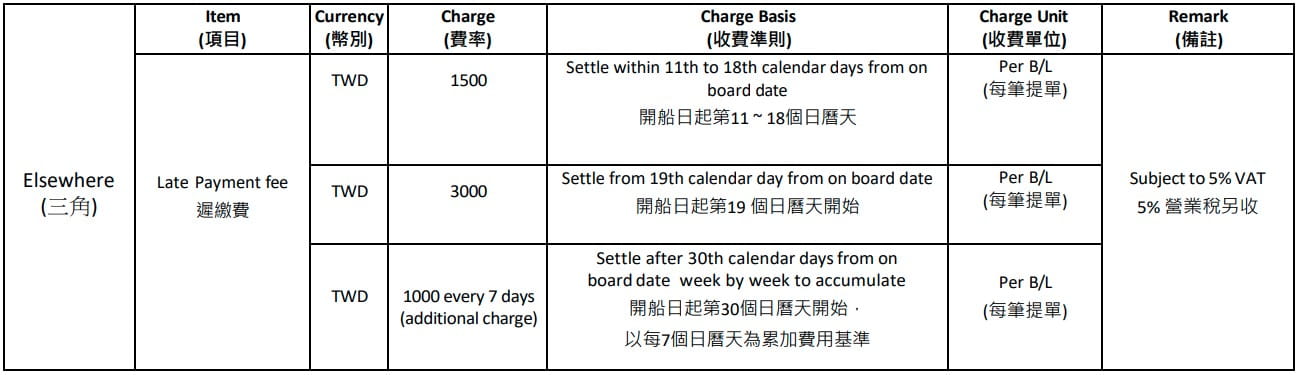 MSC Taiwan Local Charges – ELSEWHERE ( subject to 5% vat)